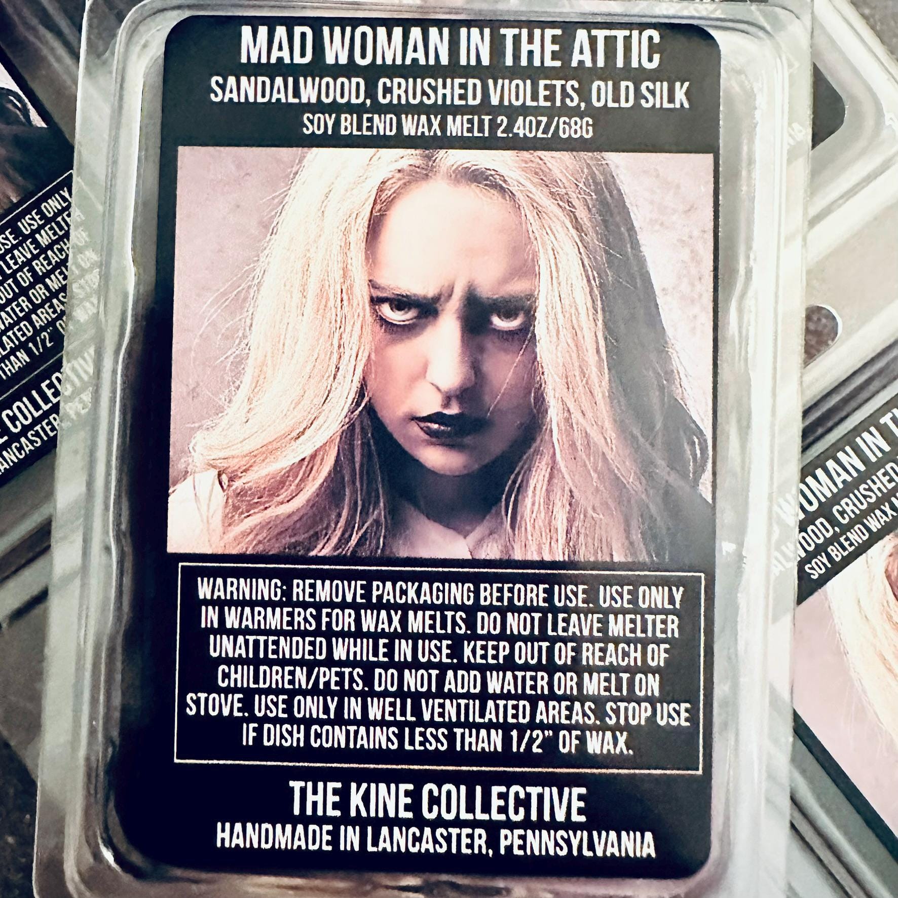 Mad Woman In The Attic - Sandalwood, Crushed Violet, Tattered Silk, Vanilla 2.4oz Artisan Soy Wax Melts