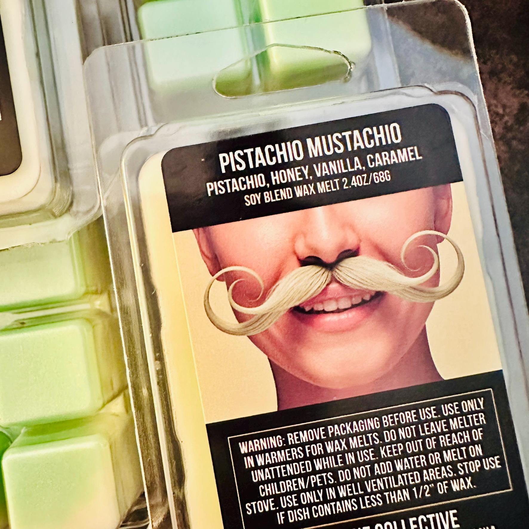 Pistachio Mustachio - Honey, Pistachio Vanilla, Caramel Wax 2.4oz Artisan Soy Wax Melts